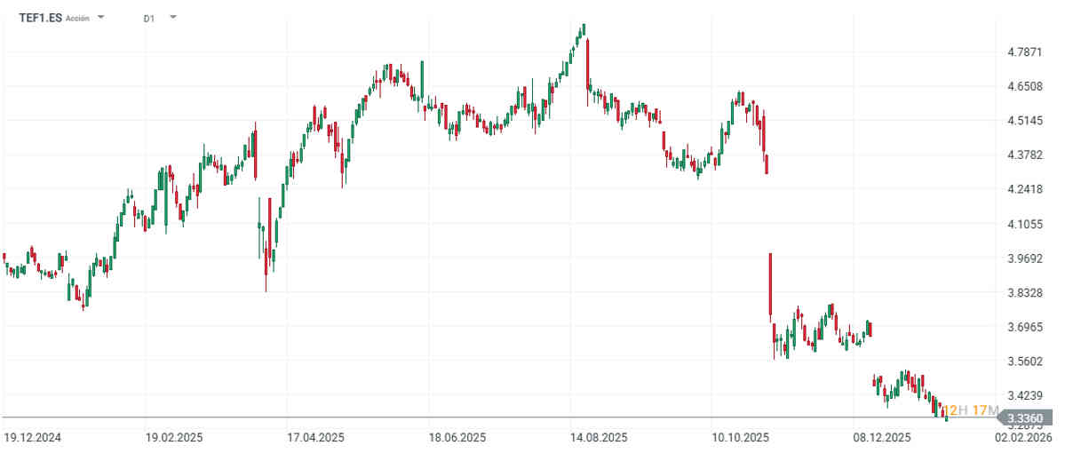 Las acciones de Telefónica caen un 4% en este 2026.