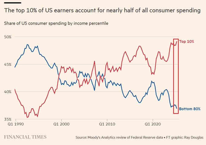 El 10% de la población aporta casi el 50% al gasto en consumo total de EEUU, frente al 80% más pobre que aporta cerca del 37%.