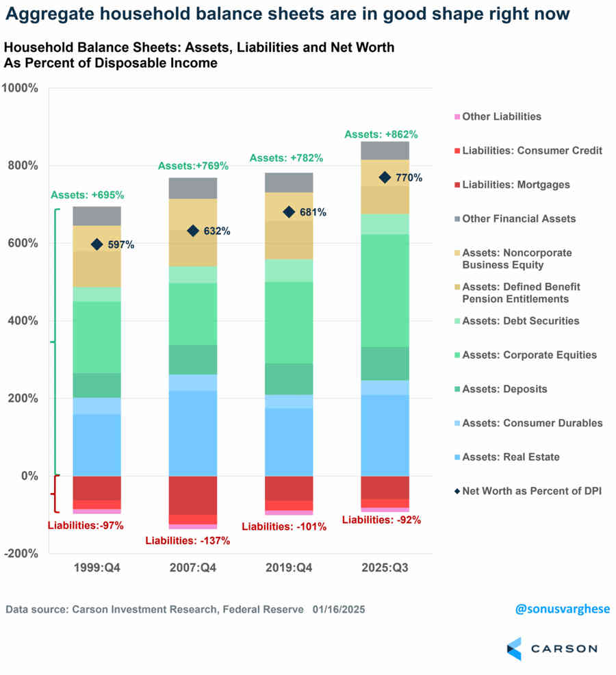 La gran concentración de riqueza en manos de unos pocos distorsiona la realidad de las métricas que miden la situación financiera de la población. Métricas como la siguiente que muestra unas condiciones financieras en perfecto estado de forma cuando la realidad es otra si se elimina la aportación de los activos a la riqueza total ya que cerca del 90% de los mismos está en manos de sólo el 10%, los más ricos.