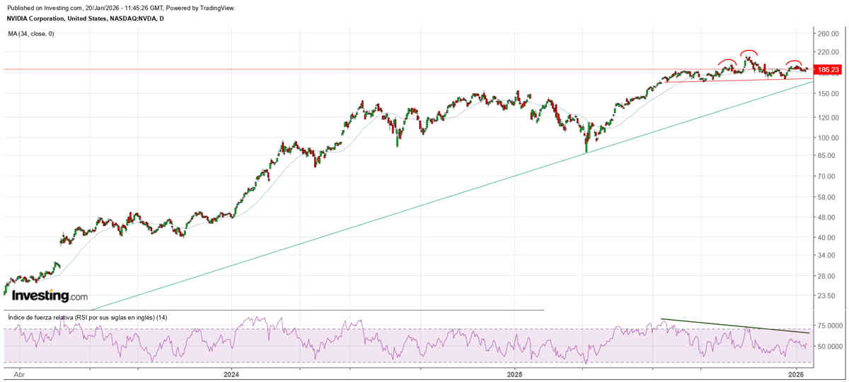 Particularmente en empresas cuyo aspecto técnico favorece apostar por el lado corto como es el caso de Nvidia, la empresa de mayor capitalización, que más ha concentrado el interés inversor y contribuido al alza del conjunto del mercado durante meses.