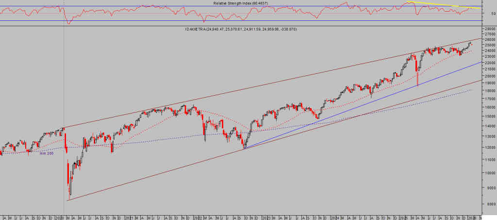 También las bolsas europeas cotizan en zona de máximos históricos y también tienen mucho que descontar después de la carrera alcista de los últimos años desplegada sin gran apoyo de fundamentales. Gran divergencia Economía-Mercados en Alemania. ¿DAX? y bonos reaccionando!