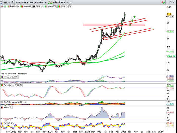 Con apuestas bajistas en el valor pese a este escenario que en el corto plazo pueden incluso favorecer la proyección hacia objetivos hacia los 100€ y superiores, mientras las zonas relevantes actualmente como soporte no se vean perforadas.