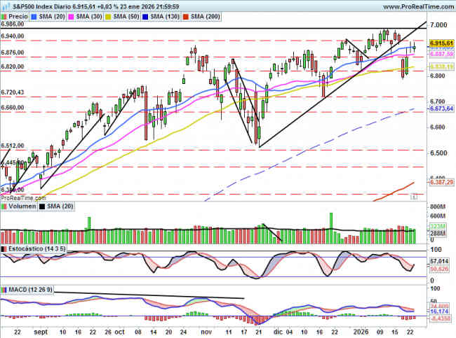 por debajo el soporte clave lo tendría en el GAP alcista de 6876 puntos, si fuese perforado podríamos ver nuevamente los 6800 y sin descartar posible corrección a 6720 puntos.