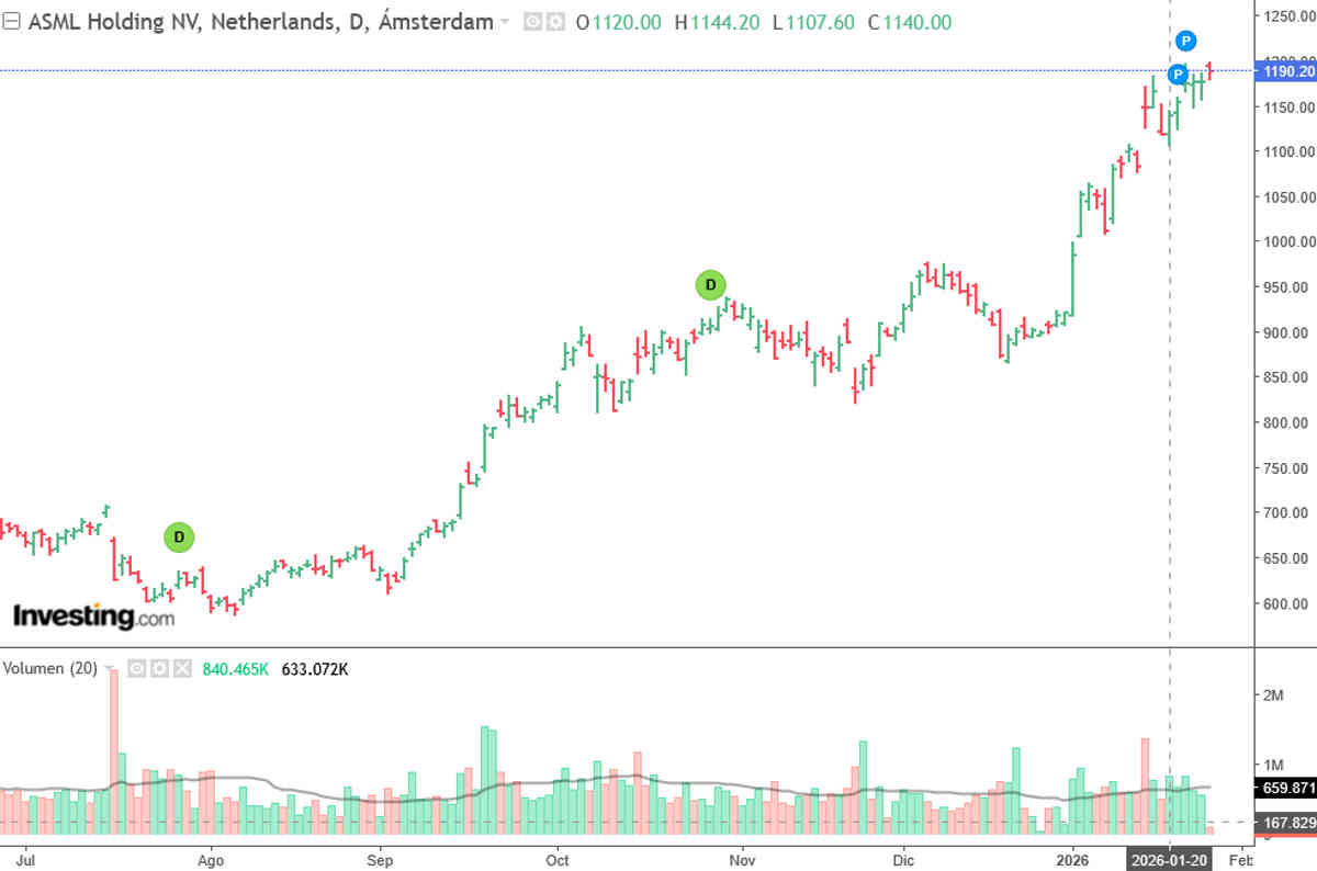 En principio los resultados de ASML están bien encaminados y se espera que el mercado se centre rápidamente en la credibilidad de la narrativa de ciclo largo frente a unas expectativas ya muy exigentes. Una vez se conozca si se ha cumplido con el rango de ventas y márgenes del cuarto trimestre, el foco virará hacia una evaluación del perfil de crecimiento 2026‑2030, la normalización de China y el ritmo de adopción de EUV/High‑NA.