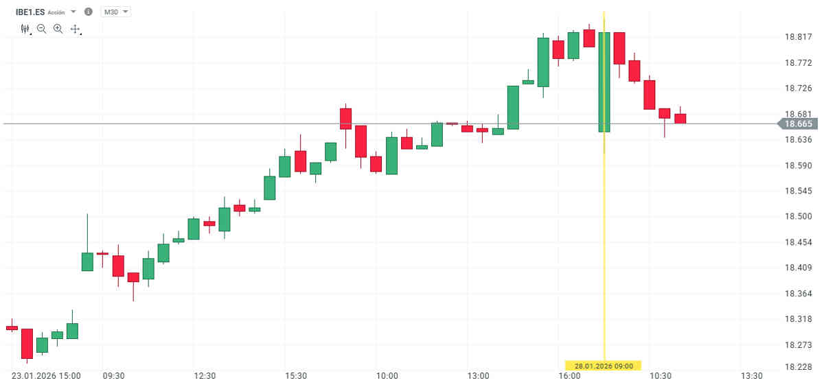 A pesar del fallo judicial, las acciones de Iberdrola cae un 0,85% en estos momentos. En el conjunto del 2026 cotiza, sin embargo, sin cambios, en niveles de cierre de finales del ejercicio anterior.