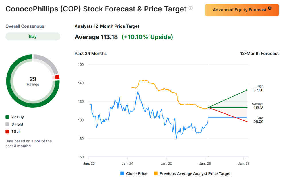 Con unos costes de equilibrio bajos y un enfoque en cuencas de alto margen como Permian y Eagle Ford, los beneficios de ConocoPhillips se disparan con el aumento de los precios del crudo, como se evidencia en su sólido rendimiento para 2025. Su sólido balance, el atractivo de sus dividendos (con un rendimiento de alrededor del 3,3%) y el potencial de pagos especiales la convierten en una empresa resistente.