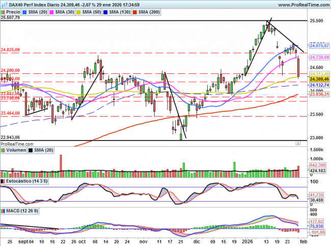 • DAX: Por debajo del soporte clave de 24380 puntos 30 enero 2026