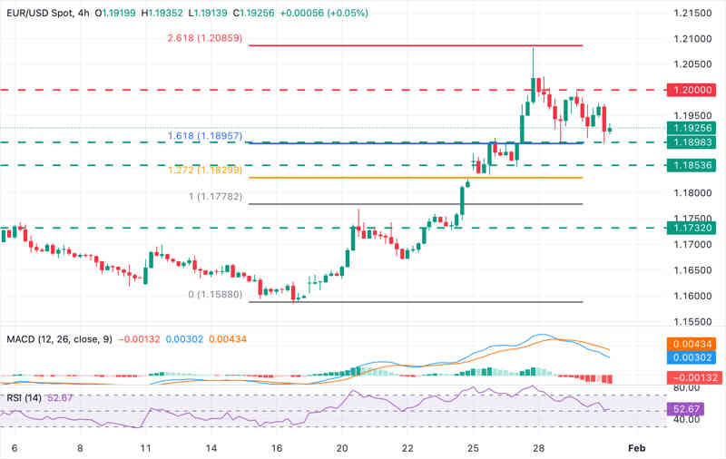 El EURUSD  registra pérdidas moderadas el viernes, cotizando a 1.1920 en el momento de escribir, mientras el Dólar estadounidense se recupera en medio de la especulación de que Warsh será el próximo presidente de la Reserva Federal (Fed) y las esperanzas de que se pueda evitar el cierre del Gobierno.