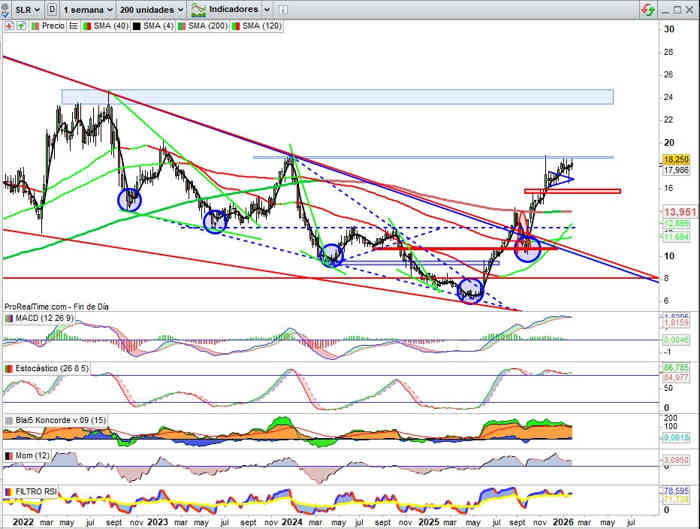 Se traduce todo lo anterior del lado técnico por tanto en cierre semanal en 18,59€ con una revalorización del +2,74% esta semana. Finalmente la negociación de la semana en su particular alta volatilidad llevó las cosas a su sitio en reflejo de todo lo anterior comentado en escenario SHORTSQUEEZE, y semana si nos fijamos muy en correspondencia con la evolución de GRENERGY marcando nuevos máximos históricos en su caso, lo que unido a los factores antes señalados de la evolución del SHORSQUEEZE gana en relevancia técnica la presión compradora y por tanto alcista de los títulos de SOLARIA.