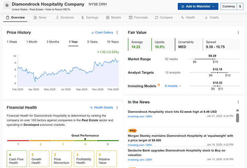 Diamondrock Hospitality posee una cartera de hoteles y resorts de primera categoría, que prosperan gracias al repunte de los viajes. Las acciones alcanzaron máximos de 52 semanas y ofrecen un dividendo del 5,2%, con mejoras en las previsiones de los analistas y un crecimiento del beneficio por acción del 134% para todo el año 2026.