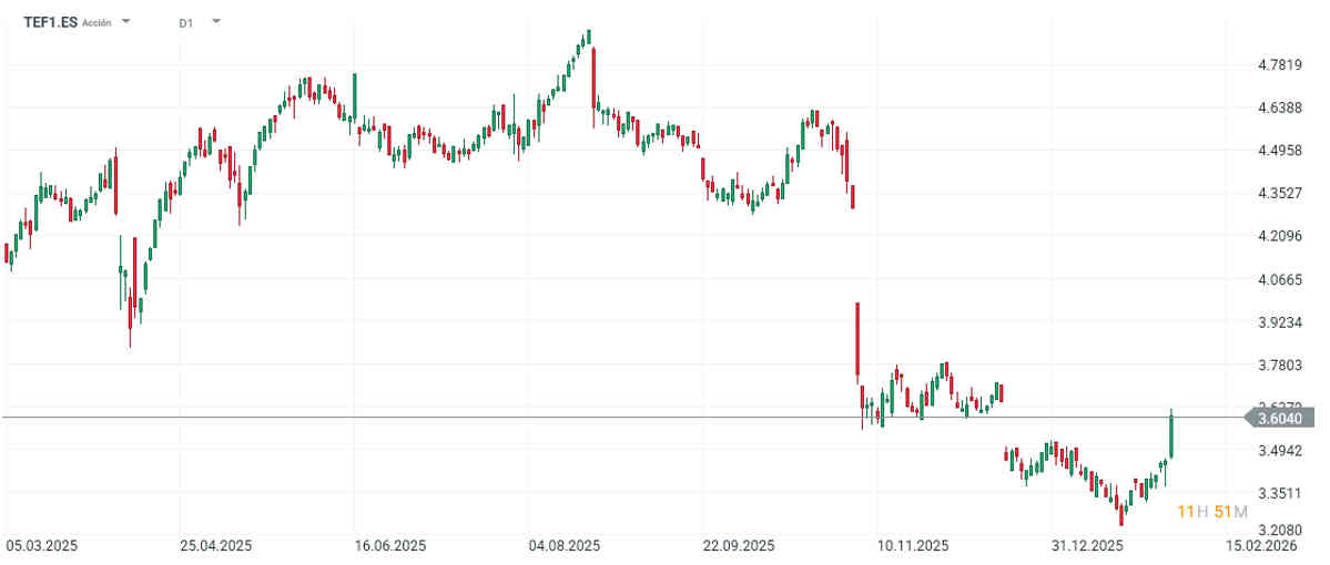 Las acciones de Telefónica suben un 3% en este 2026.