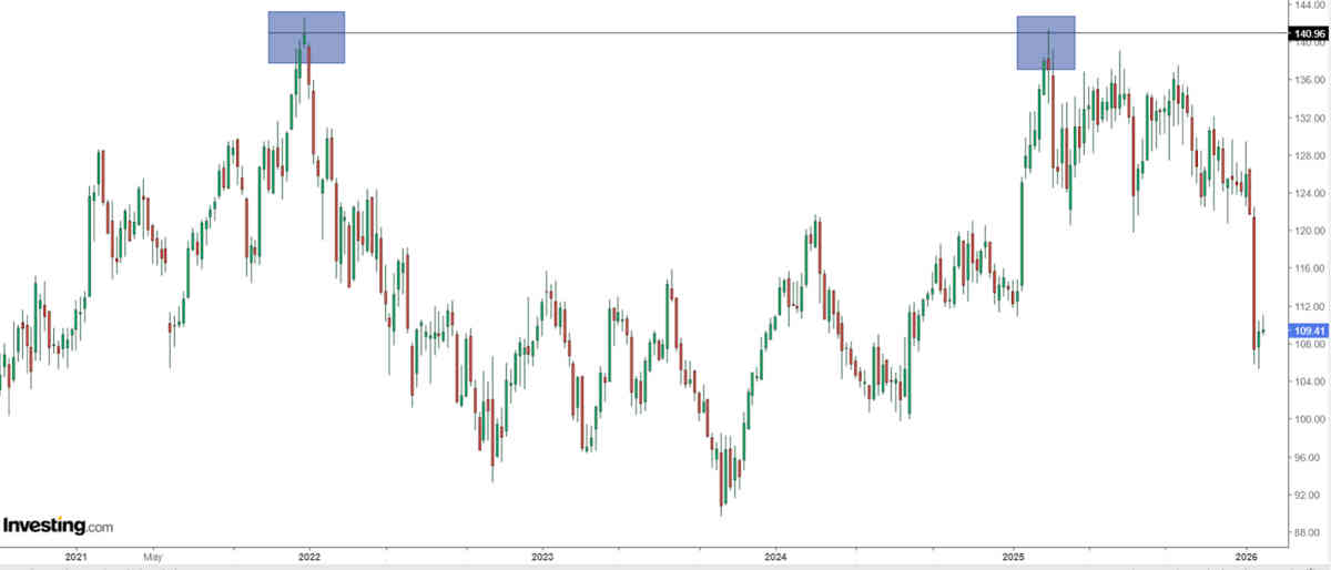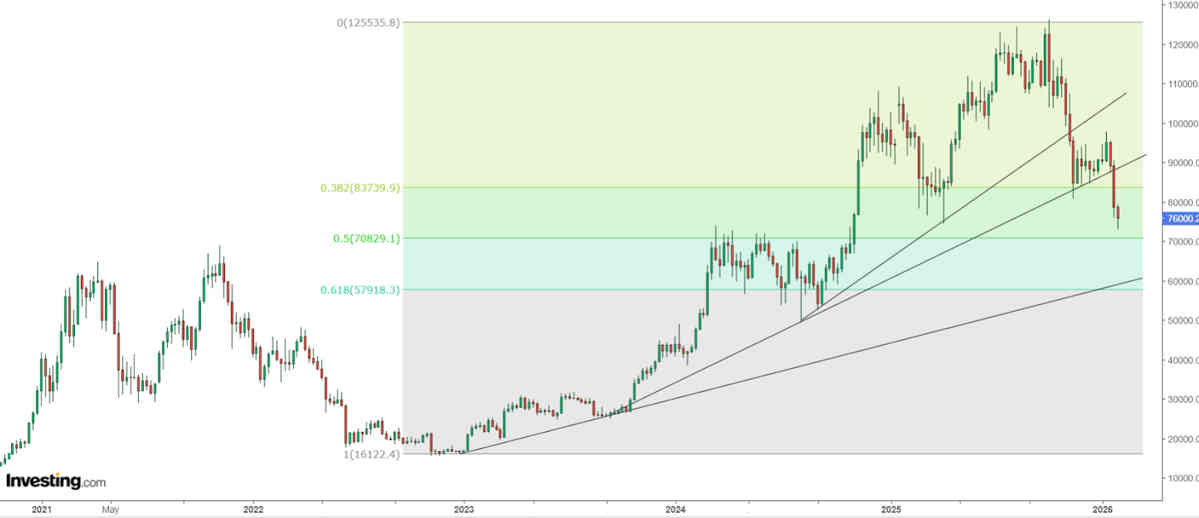 El oro lleva un rally alcista bastante fuerte. El futuro del oro desde septiembre de 2022 subió de 1.522 a 5.626. Pero desde finales de enero ha sufrido recortes.