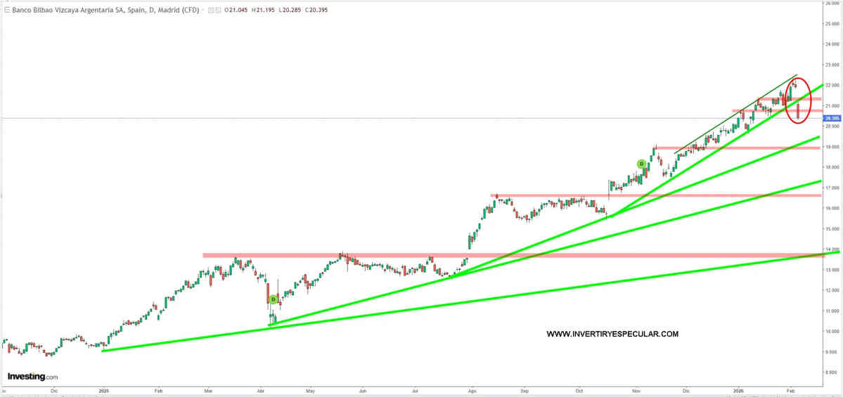 Ya nos dirán ustedes por qué BBVA (BBV:MC) tras presentar resultados se cae más de un 6% la acción con tal exhibición de fuerza viniendo de un año 2025 de récord tras récord. Los periodistas del ámbito salmón andan justificando inútilmente el recorte de hoy argumentado dudas como la marcha en Turquía y Argentina o que el beneficio neto trimestral quedó por debajo de lo previsto, un 3% por debajo de sus estimaciones y un 1% inferior al consenso, tras unas provisiones superiores a lo estimado.