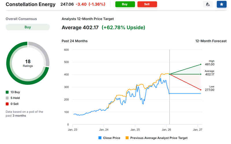 - Constellation Energy Corp: Una apuesta nuclear que se beneficia de los cambios hacia las energías limpias. Los analistas ven un potencial de hipercrecimiento y un potencial alcista del 62,8%.