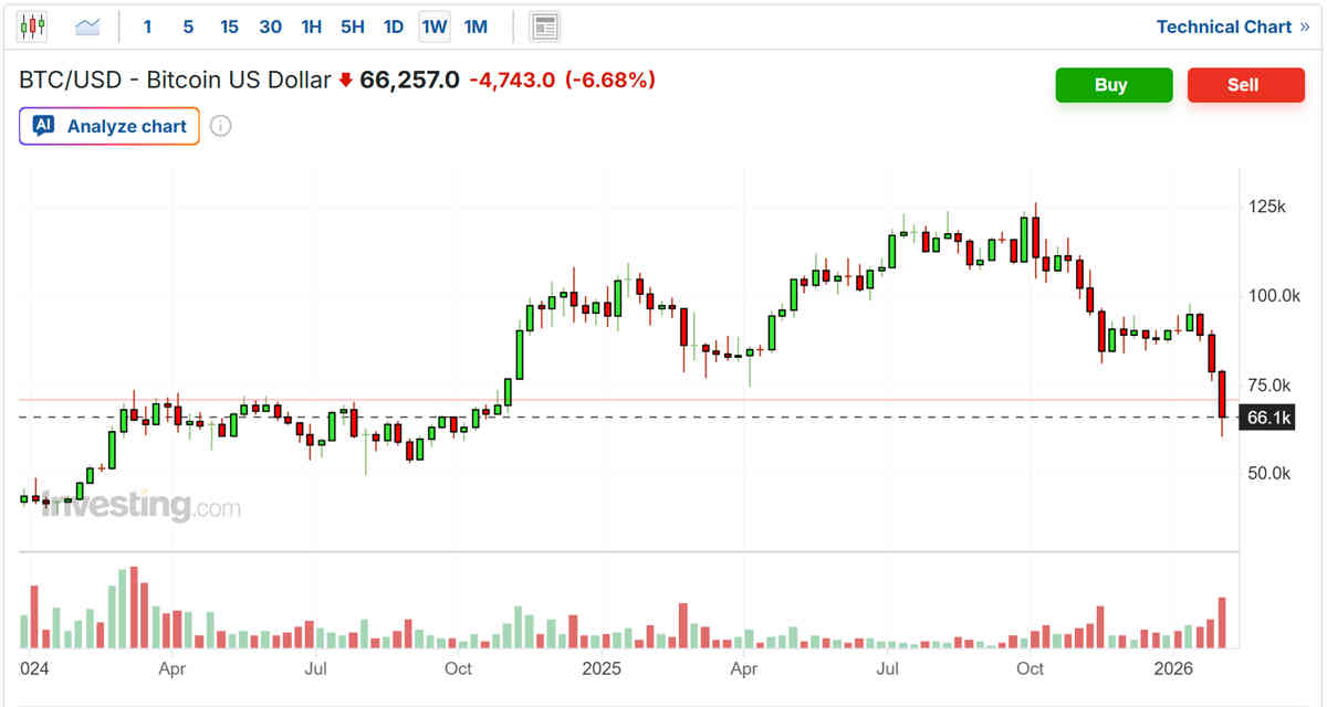 Esta sensación de aversión al riesgo se ha extendido a las criptomonedas y las materias primas, con Bitcoin cayendo por debajo de los 65.000 dólares y la plata desplomándose hasta un 17% en una sola jornada.