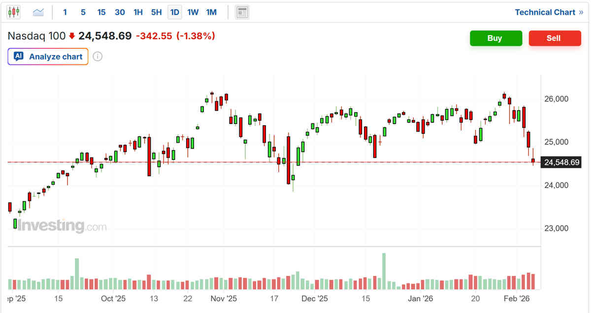 Los principales índices, como el SP500, el Nasdaq 100, han sufrido su peor caída en tres días desde la venta masiva del “Día de la Liberación” de abril de 2025, perdiendo cientos de miles de millones en valor de mercado.