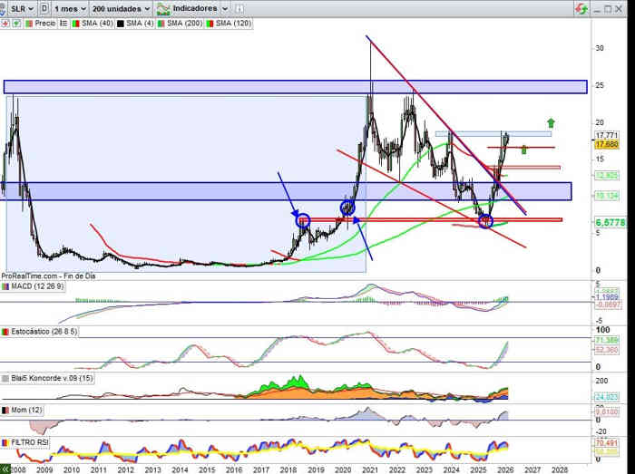 Sobre Gráfico Mensual, la directriz resistencia del Campo Expansivo en el que se ve proyectado el valor en desarrollo de sus estructura alcista actual sería referencia de proyección de cara a desarrollo 2026, esta creo en sugerencia técnica para marcar la verticalidad de la posible proyección alcista hacia sus máximos históricos.