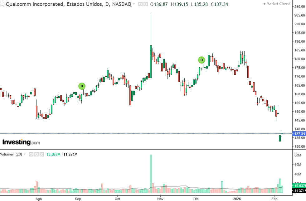 Los resultados de Qualcomm son buenos, pero el outlook para el año es flojo y el CapEx muestra métricas disparadas. El mercado teme que el crecimiento de ingresos no sea suficiente para justificar el aumento de inversión.