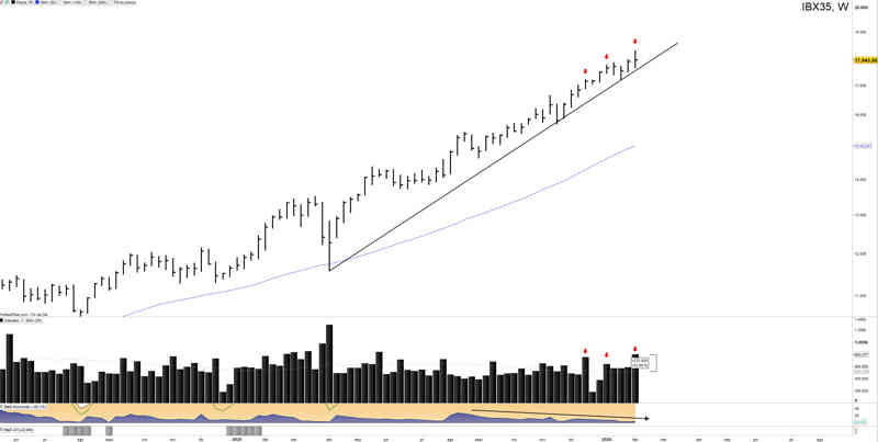 Fijaros esta semana, vela con nulo desplazamiento respecto a la semana anterior, oferta por arriba y el volumen más alto desde mayo.