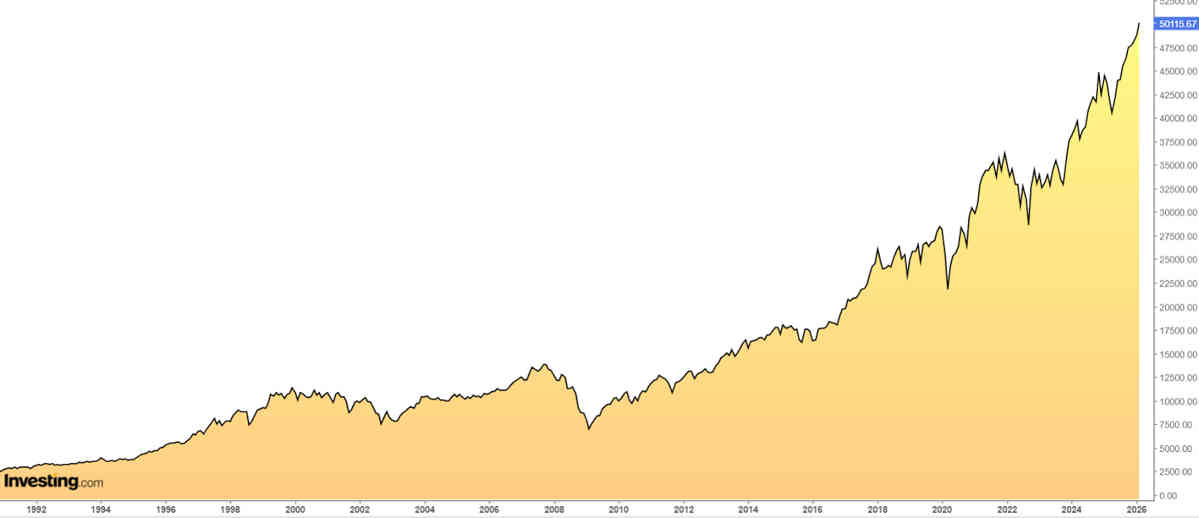 2º El Dow Jones marcó la pasada semana un nuevo máximo histórico alcanzando los 50.000 puntos, un hecho relevante que se suma al logrado por el SP500 a finales de enero en los 7.000 puntos. Además es el mejor índice estadounidense en 2026. El Dow Jones se creó en 1885 y desde entonces logró alcanzar los 10.000 puntos en 1999, los 20.000 puntos en 2017, los 30.000 puntos en 2020 y los 40.000 puntos en 2024.