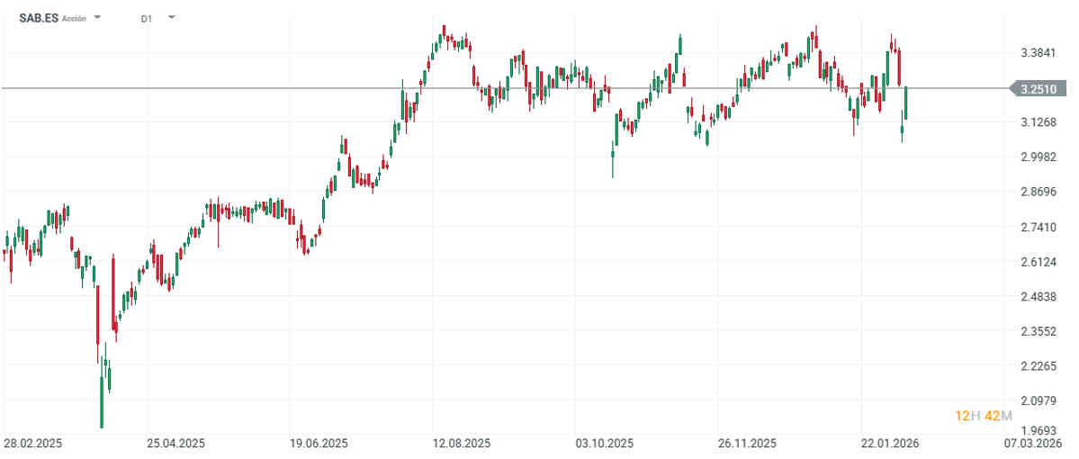 Las acciones de Sabadell caen un 6% en este 2026.