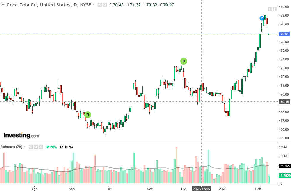 Coca Cola es una compañía cuyo atractivo no depende únicamente del precio de la acción, sino de su dividendo constante y su crecimiento moderado pero estable. A pesar del impacto de estos resultados, las acciones de Coca-Cola muestran fortaleza en múltiples temporalidades: