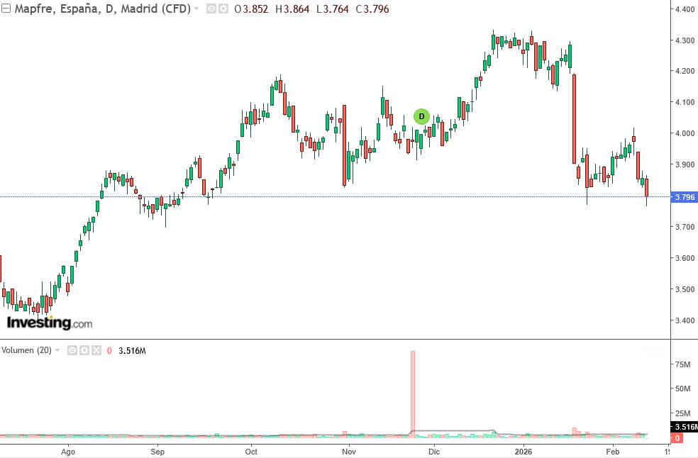 Las acciones de Mapfre caen más de un 1% tras la publicación de los resultados. En el acumulado del año, las acciones de Mapfre extienden sus caídas, y pierden más de un 10%.