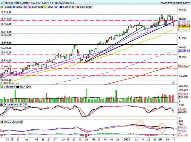 Por arriba para pensar en una recuperación el IBEX35 tendría que superar 17945 puntos y eso todavía queda lejos.