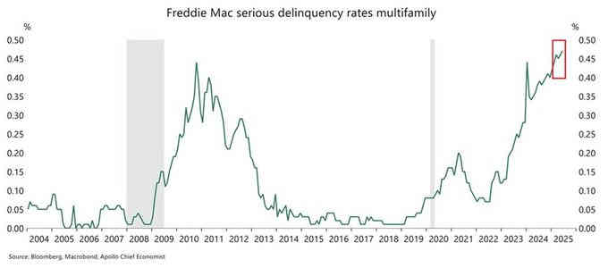 Las tasas de morosidad en las hipotecas multifamiliares concedidas por Freddie Mac han subido hasta el nivel más alto en al menos 21 años, después de casi duplicarse en solo los últimos 2 años. Las de Fannie Mae han subido también, al nivel más alto desde 2021.