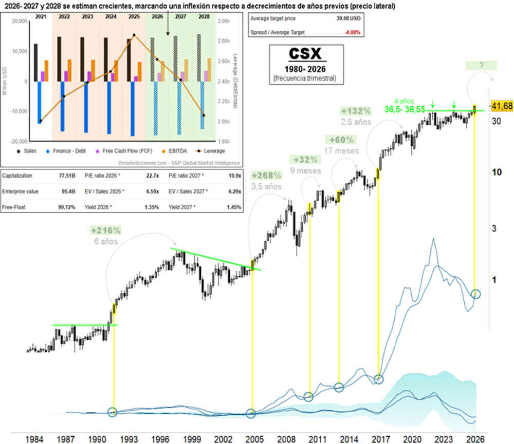 Una de las principales empresas de transporte ferroviario de mercancías en Norteamérica, CSX, viene rompiendo los máximos de sus últimos cuatro años, reflejando por adelantado las mejoras en la economía real, especialmente en la parte industrial y de bienes.