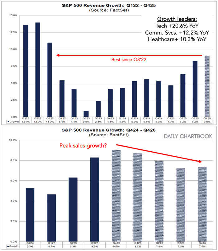 Mientras que los beneficios reportados por las empresas del SP500 están siendo muy positivos en los últimos trimestres y se espera que continúen fuertes, los analistas advierten desaceleración gradual de las ventas de cara a los próximos 4 trimestres.