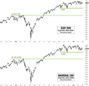 Ranking de las Bolsas mundiales Así van las principales Bolsas mundiales en lo que llevamos de 2026: Nikkei japonés 16,91% Ftse británico 9,86% Ibex español 6,08% Eurostoxx 50 5,99% Cac francés 5,29% Mib italiano 5,04% Hang Seng chino 3,90% Dax alemán 3,24% Dow Jones 1,90% S&P 500 0,49% Nasdaq -2,47% Sentimiento inversores (AAII) El sentimiento […]