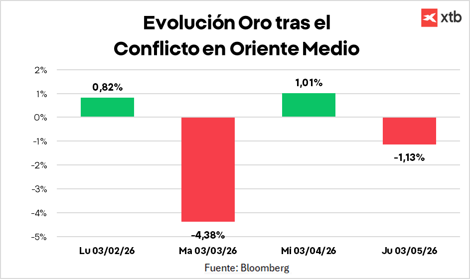 Si miramos hacia atrás y comparamos cómo se comportó el oro durante los primeros cuatro días tras el estallido de distintos conflictos geopolíticos de alcance global, vemos que el patrón no es uniforme. Cada episodio muestra una reacción distinta, lo que evidencia que el oro no responde siempre de la misma manera ante un shock internacional.