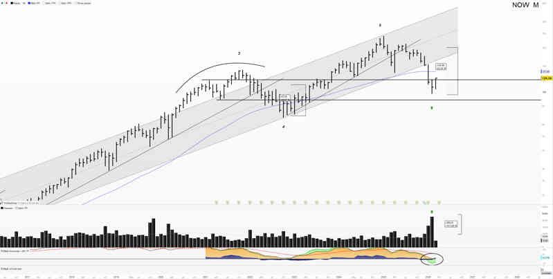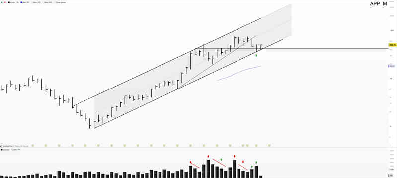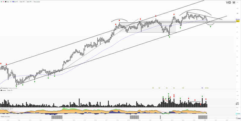 Lo mismo que con anteriores, las pasamos al lado mensual. En este caso siguiendo el valor, y siendo de las pocas, que están dentro de canal alcista.