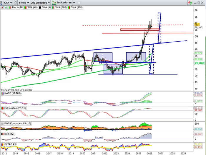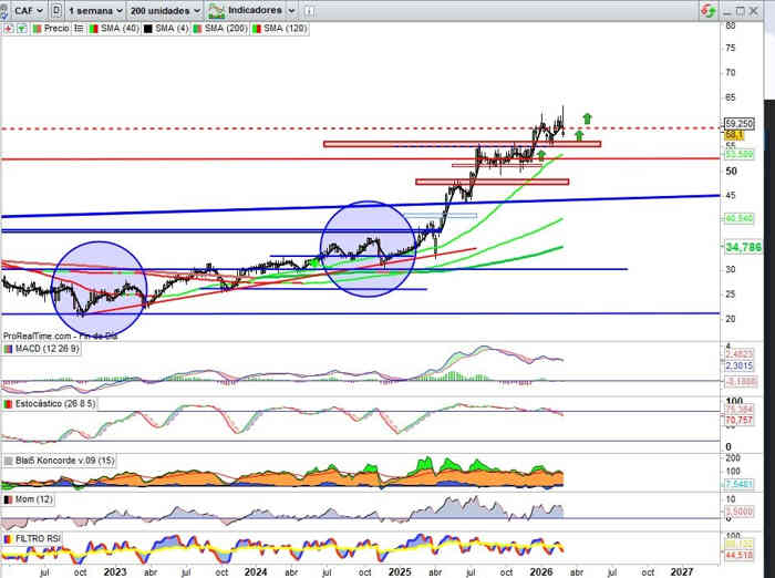 Indicadores en señal de compra y en favor de la tendencia en CAF.