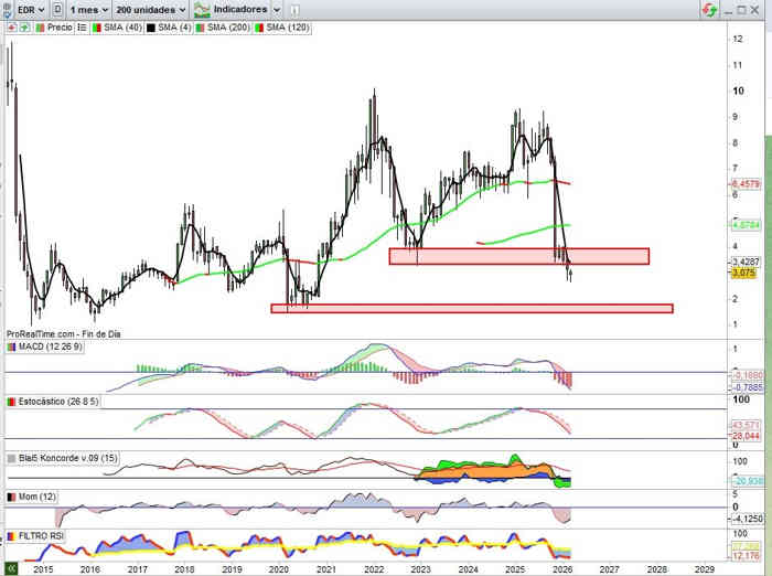 Y del lado de los recortes, más en este escenario geopolítico ahora activado, si el valor probase la zona de los 1,85€ y 1,50€.