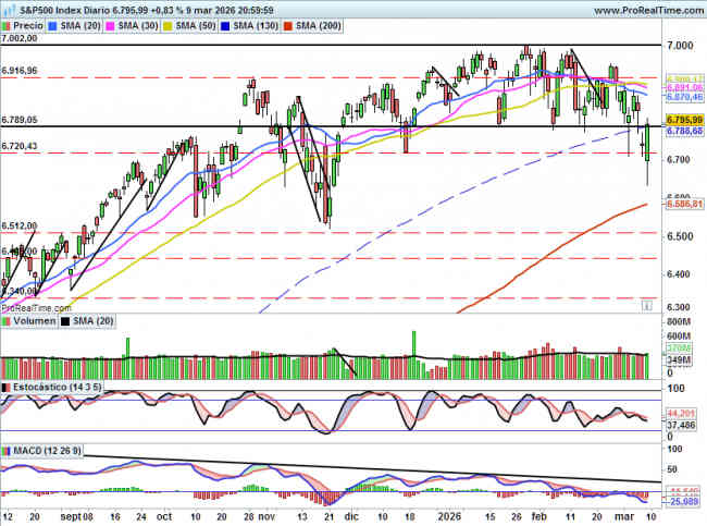 Por debajo difícil dar soportes, aunque al cierre diario el nivel de 6720 sigue funcionando.