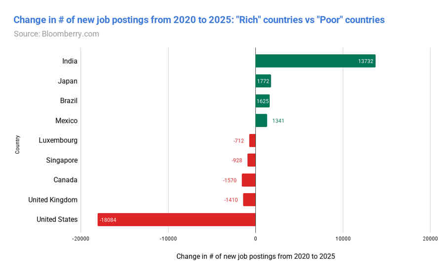 El número de ofertas de empleo de Amazon en países de bajo coste ha aumentado 154% desde 2020. Los principales mercados en este crecimiento son India, México, Brasil y Japón. A pesar de los miles de despidos anunciados en Estados Unidos, el número total de empleados y los costes han seguido aumentando. En la práctica, los trabajadores no desaparecieron: simplemente cambiaron de ubicación geográfica.