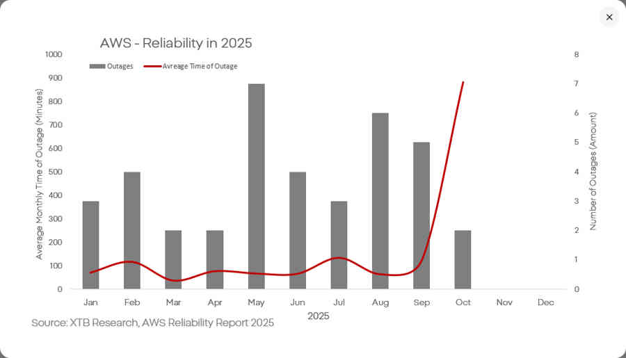 Al analizar la frecuencia y duración de las interrupciones del servicio de AWS, se observa un deterioro progresivo de la situación. Los informes financieros siguen mostrando márgenes y crecimiento excepcionales en este segmento, que constituye la base de la narrativa de valoración de la empresa. Sin embargo, surge una pregunta clave: ¿cuánto tiempo podrá sostenerse este crecimiento si la calidad y la fiabilidad del servicio continúan deteriorándose?