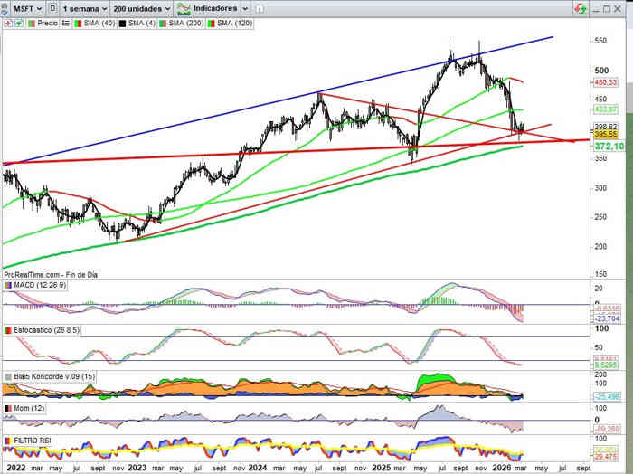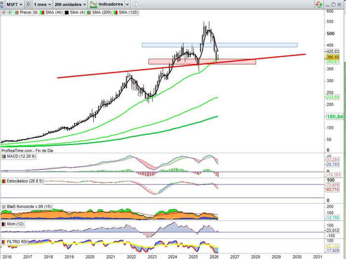 La Media Móvil de 200 se encuentra ahora en los 372$ por acción. Siempre que este por debajo del precio y ahora tan próximas zona clave para intentar operativas incluso si se plantean con stops loss ajustados a la pérdida de estas referencias.