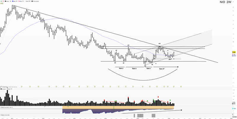 La clave se encuentra en superar directriz bajista y zona 7.50$, pero el gran aspecto lo mantiene. Sumamos también que, por primera vez, las manos fuertes pasan a compradoras en periodos amplios.