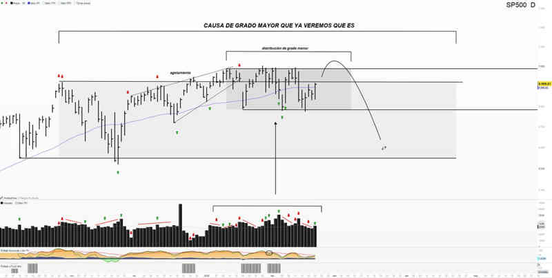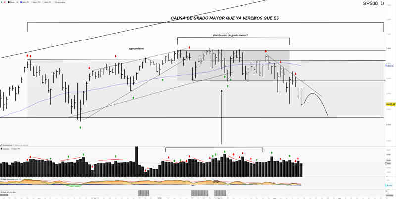 Marcábamos en el SP500 una distribución de grado menor con el fin de buscar la parte baja del rango lateral de grado mayor, Por el momento, es lo que ha sucedido.
