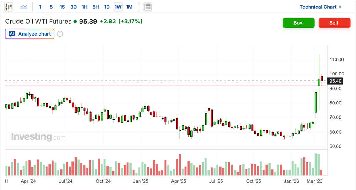 El telón de fondo dominante es la actual agitación en Oriente Próximo, que ha provocado una subida de más del 40% de los precios del crudo desde finales de febrero. El pertoloe Brent ronda los 105 dólares por barril, mientras que el WTI se sitúa en torno a los 95 dólares.