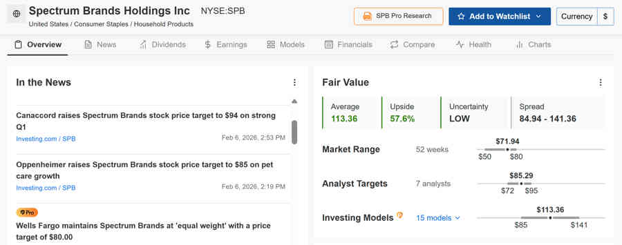 La rentabilidad por dividendo del 2,5% de Spectrum, con un pago de 1,88 dólares por acción, aporta una fuente de ingresos estable. Los analistas ven margen de subida adicional, con un potencial de revalorización del valor razonable del 57,6% y un potencial alcista del 18,7% según los analistas, lo que sugiere que el repunte podría tener recorrido, especialmente si sus inversiones en marcas y sus planes de separación de segmentos impulsan los márgenes como se espera.