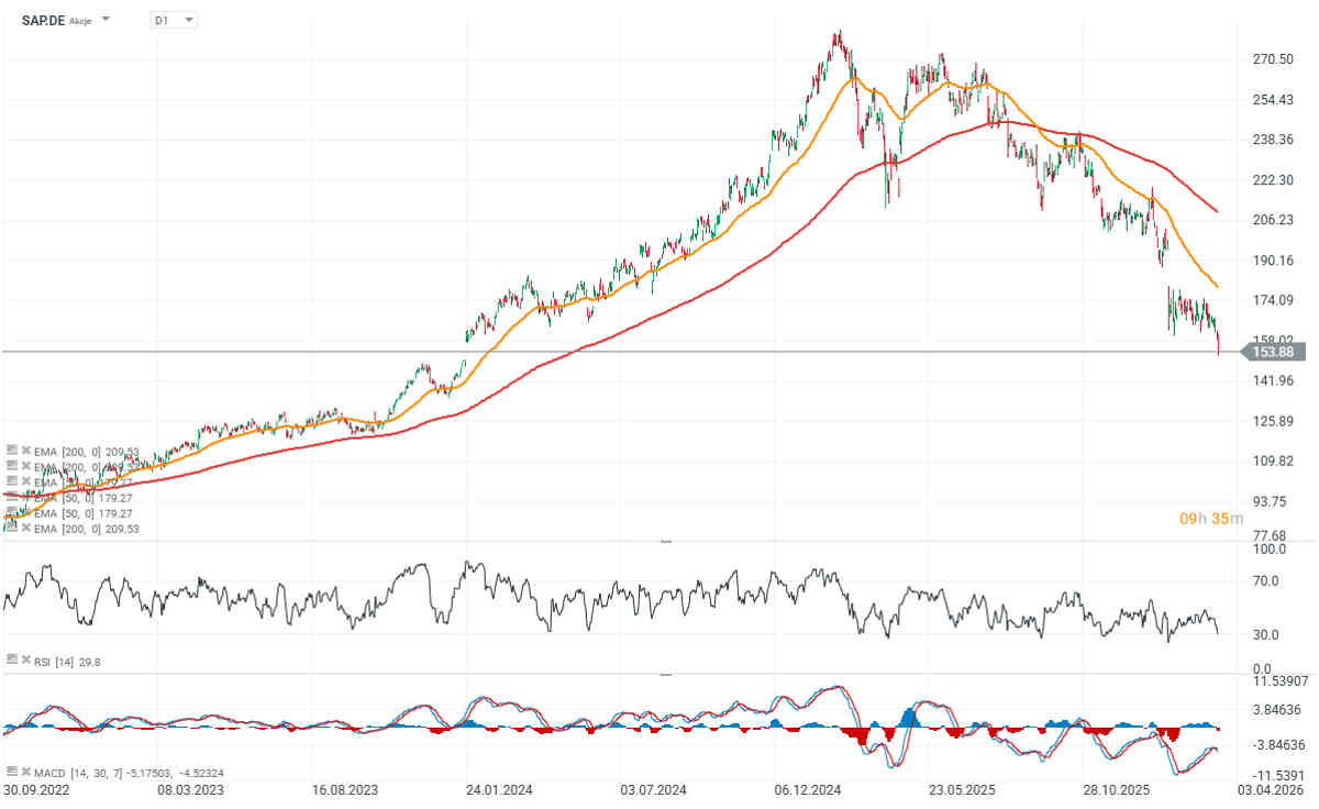 SAP también se beneficia de altos costes de cambio para los clientes y de relaciones empresariales de larga duración, lo que refuerza su posición competitiva en el mercado. Al mismo tiempo, la compañía informó recientemente de sus resultados del cuarto trimestre de 2025, que quedaron por debajo de las expectativas de los analistas.