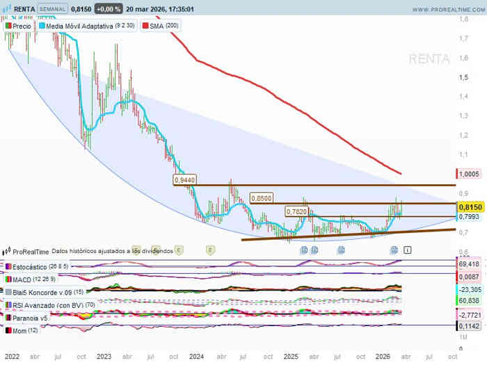 La pérdida de estos, implica buscar la alcista de l/p, valores sobre 0,71€