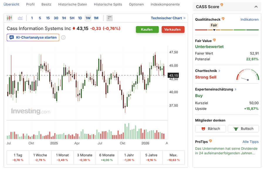 No se trata de una historia de alto crecimiento, sino de una trayectoria estable, con sólidos rendimientos para los accionistas y un balance general sólido. Para los inversores dispuestos a mirar más allá de las grandes empresas, Cass es una buena acción para mantener en la lista de seguimiento.