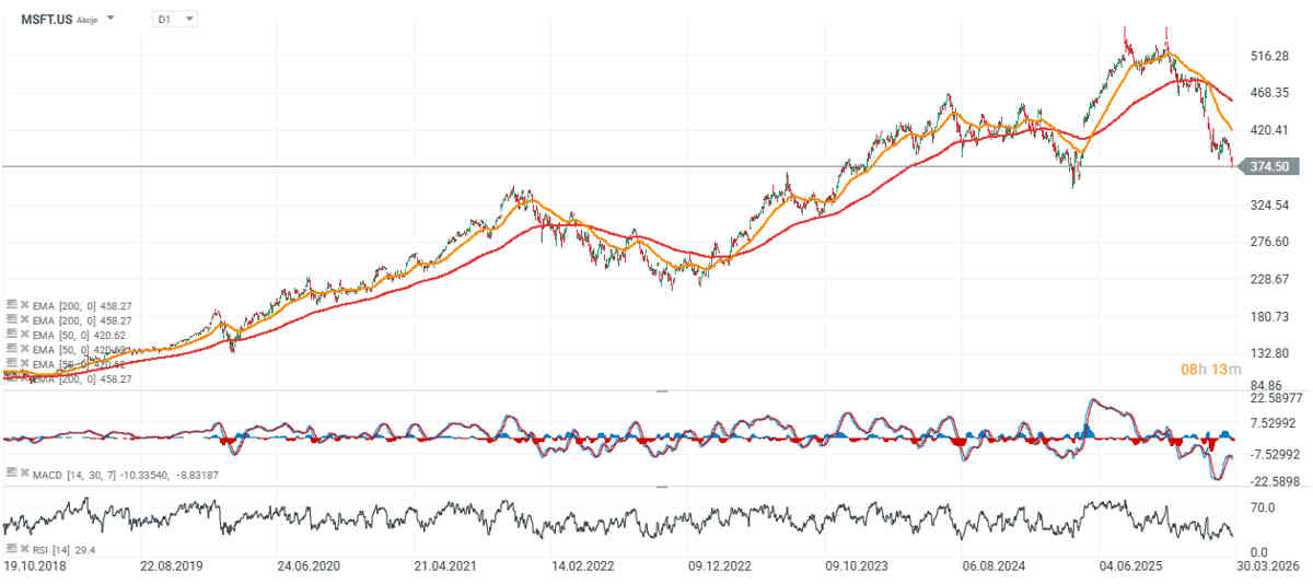 Los inversores que, hasta hace poco, estaban dispuestos a financiar la carrera por la infraestructura de inteligencia artificial con pocas reservas, ahora empiezan a plantearse preguntas mucho más concretas sobre la sostenibilidad del crecimiento en el contexto de una posible desaceleración global, incluso en Estados Unidos. Aunque la valoración de Microsoft ha disminuido significativamente y la empresa cotiza ahora a unas 20 veces sus beneficios previstos para los próximos 12 meses, las acciones siguen bajando.