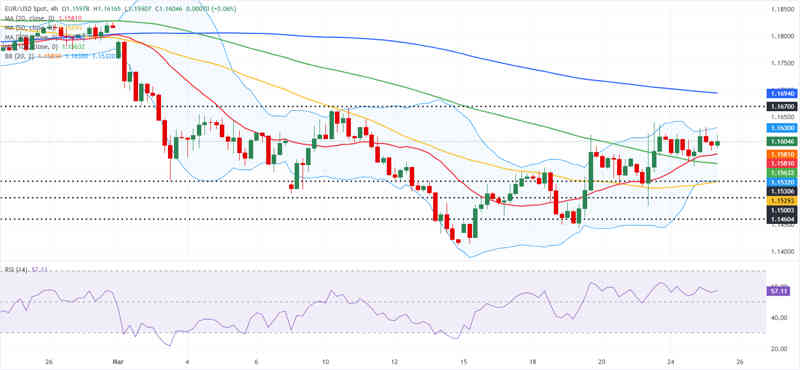 Tras la acción bajista observada en la primera mitad del día el martes, el EURUSD protagonizó un rebote decisivo en la sesión americana para cerrar el día prácticamente sin cambios. El par fluctúa en un canal estrecho alrededor de 1.1600 en la sesión europea del miércoles mientras los inversores esperan claridad respecto al conflicto en Oriente Medio.