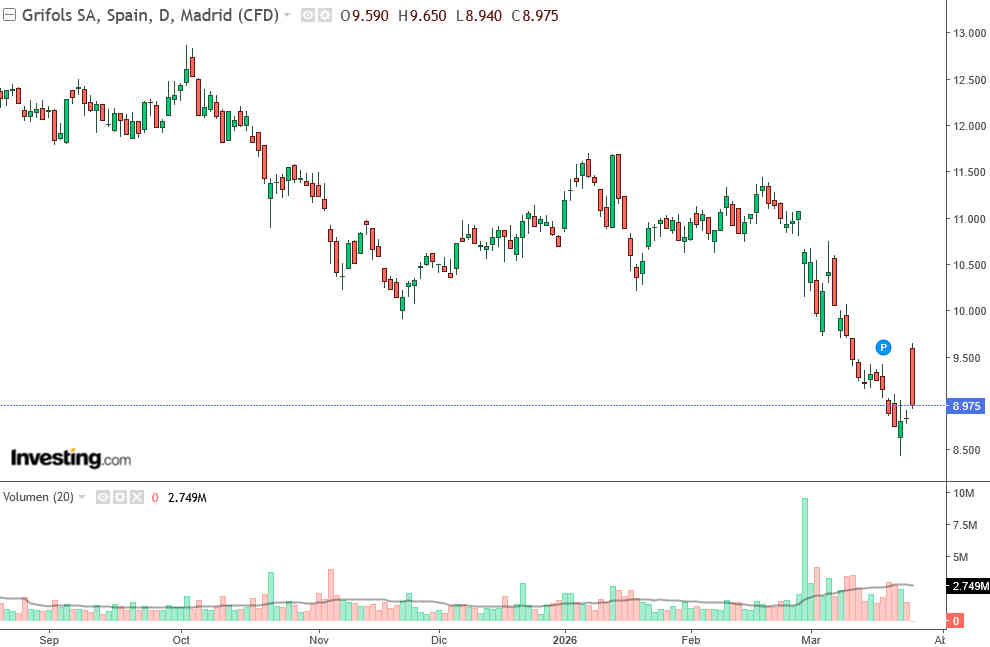 Con este anuncio, la compañía intenta revertir la tendencia bajista en la que se encuentra desde julio del año pasado y que ha continuado durante los primeros meses de 2026. La noticia ha sido bien recibida por los inversores, aunque Grifols aún tiene un largo camino por delante: incluso con las subidas de hoy, las acciones de Grifols acumulan un 14% en el año.